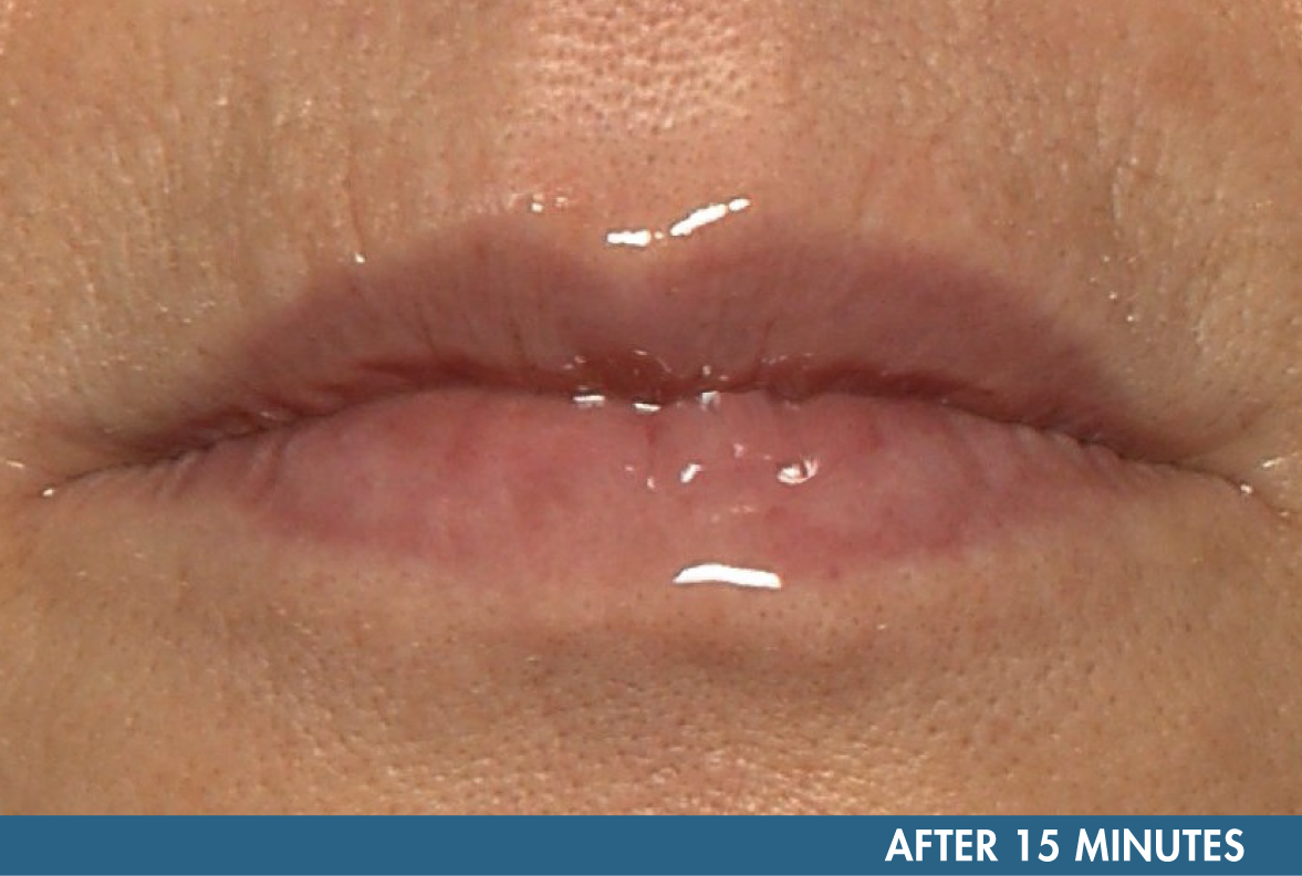 1Self-assessment test conducted on 30 volunteers aged 21–65. Subjects without chapped lips and with medium-high lip volume. Immediately after application.