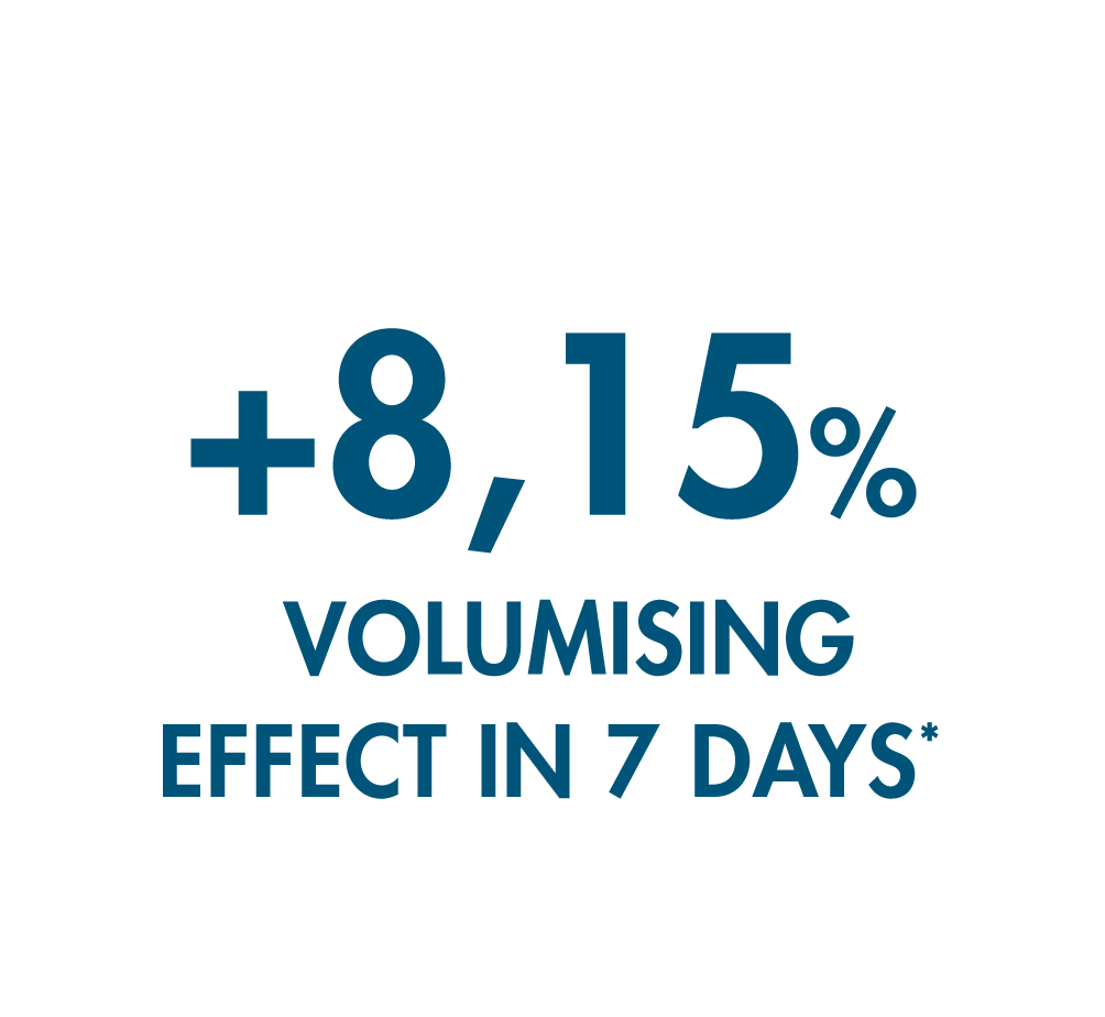*Clinical instrumental test conducted by an independent laboratory on 30 volunteers, aged 21–65, with medium-high lip volume and without chapped lips. The product was applied at least every 2 hours during the day. Average instrumental value of the plumping effect measured with Antera 3D.