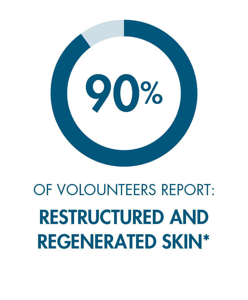 *In vivo: clinical study conducted on 20 volunteers, aged 35-61, with wrinkles and normal skin. The product was applied twice daily, morning and evening, for 6 weeks. Photos taken with Vectra® H2. *Self-assessment test conducted on 20 volunteers, aged 35-61, with wrinkles and normal skin. The product was applied twice daily, morning and evening, for 6 weeks.RESULTS
