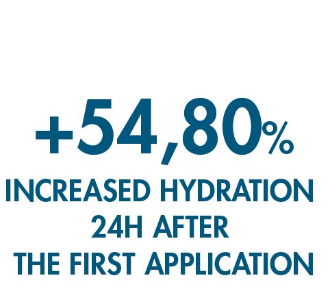 *Instrumental test conducted by an independent laboratory on 30 volunteers, aged 35–65, with laxity on the inner thighs and inner arms. The product was applied to the target areas twice daily, morning and evening, for 4 weeks. Evaluation of water content (hydration) after 24h from a single application. Evaluation of water content (hydration) after 4 weeks (2 applications per day, morning and evening, for 4 weeks). SELF-ASSESSMENT TEST