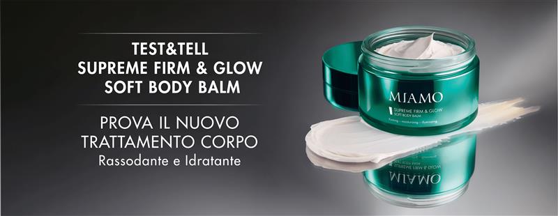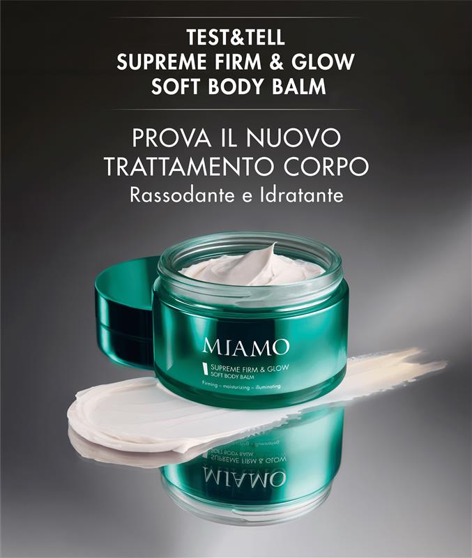 *Cliccando su «partecipa» dichiari di aver letto l'Informativa Privacy e di accettare «Termini & Condizioni» dell’iniziativa test&tell supreme firm&glow soft body balm. Iniziativa valida dal 29/04/2026 al 03/05/2026 esclusivamente per iscritti alla community Miamo Lovers.